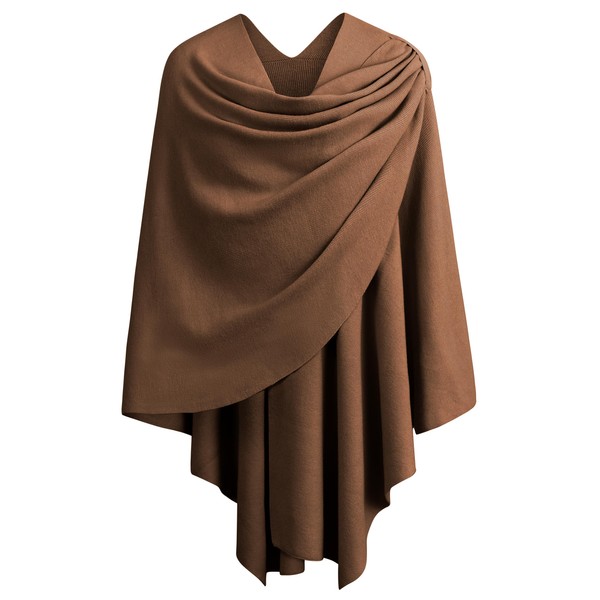 - VERSATILE DESIGN:Crossover front and the loop or button on the shoulder,to tuck the one end into.They hold the wrap in place, which makes it comfortable to wear,recommend using a brooch to secure.Irregular curved hem to create artful drapes.It is very classy and versatile for you to wear as a poncho,shawl wrap, cape,cardigan or a scarf.