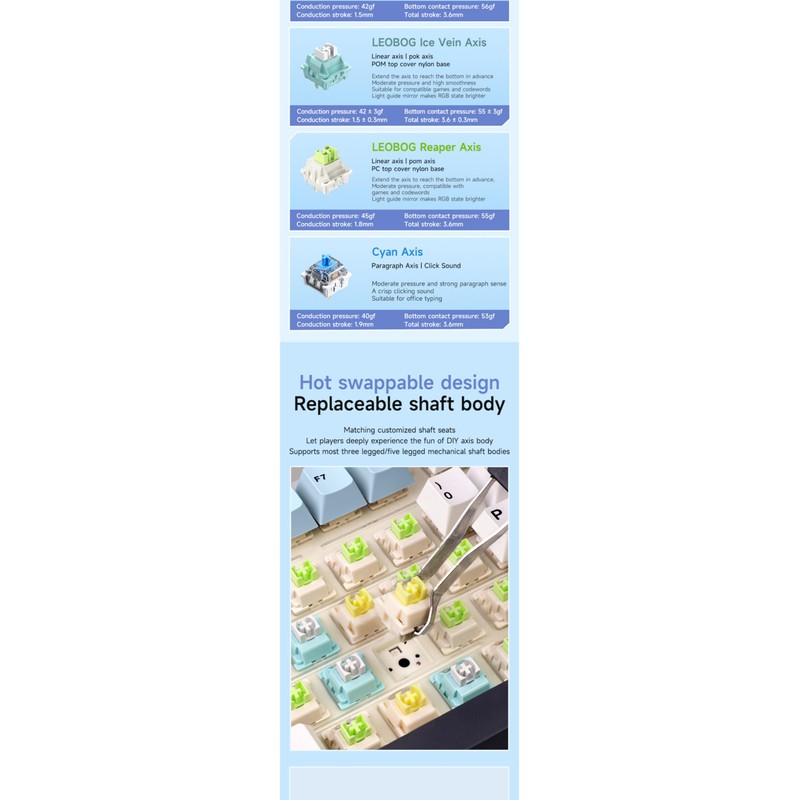 pulido's teclado F75 Gasket Mechanical Keyboard, 75% Wireless Hot Swappable Gaming Keyboard with Five-Layer Padding&Knob, Bluetooth/2.4GHz/USB-C, RGB (Light Blue, LEOBOG Reaper Switch)