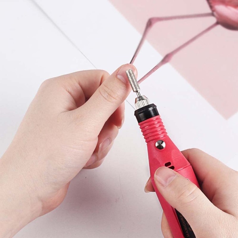 Pulidor de Uñas, Lima de Uñas Eléctrica, Kit de Taladro para Uñas 6pcs Puntas y Lijas, Velocidad Ajustable Torno Portátil para Uñas, Manicura y Pedicura