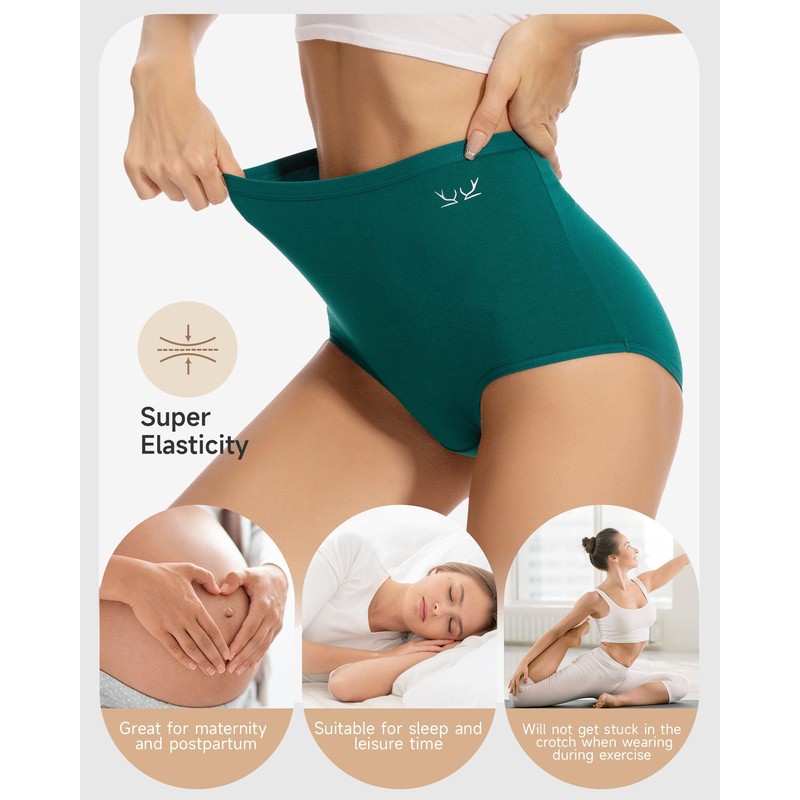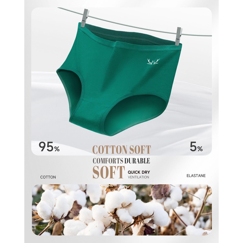Material: 95% Cotton, 5% Spandex. Soft and breathable, stretchy, tummy control, full coverage. Double-layer crotch, friendly to sensitive skin