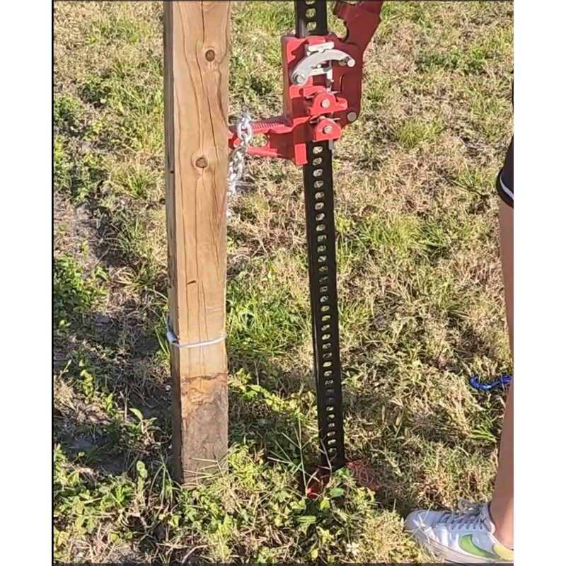 - Galvanized cable and chain- The cable lassos around the fence post which tightens like a snare when used to pop a post out. Instead of a straight chain that slips and is not adjustable to your fence post. The chain that is used on the 4x4 lever or high lift jack for the fence post removal has the clevis hook in best position to adjust chain to jack or the use the lever where you can use to easily pop your fence post out.