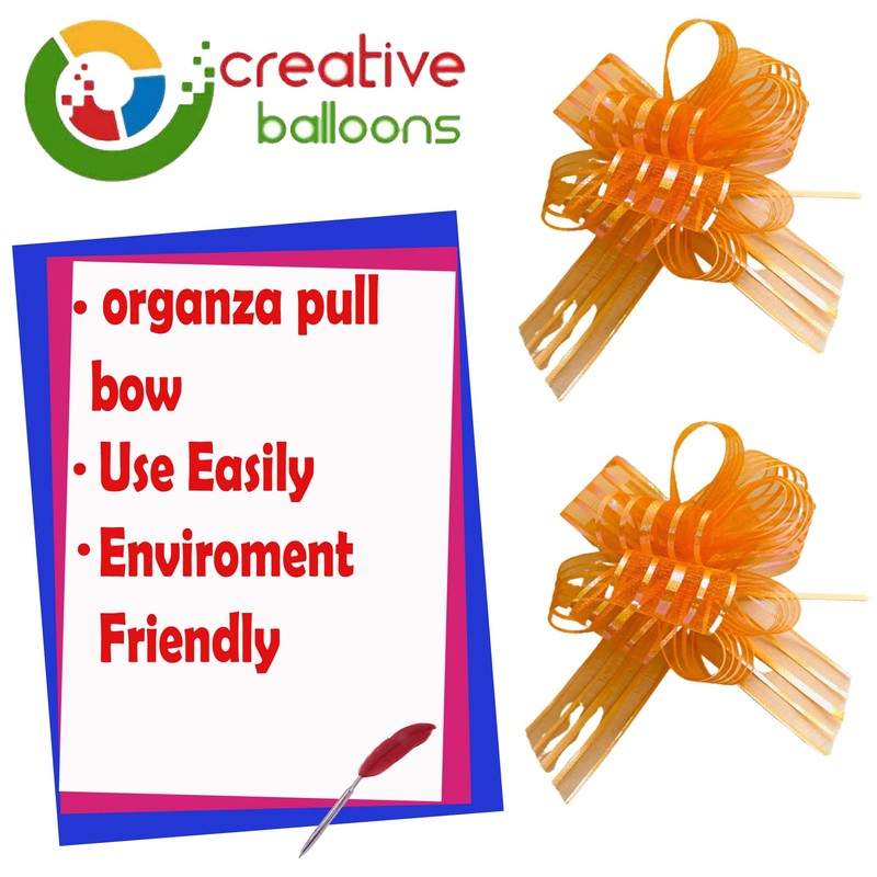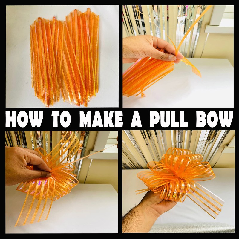• Decorative Gift Wrapping Ribbon Pull Bows: Total 2 pieces of large organza pull bows in Orange color are provided. The finished bows are around 50mm in diameter. Enough quantity for you to decorate your gifts or wedding items and presents. Perfect for decorating your gifts, cars, or as wedding supplies