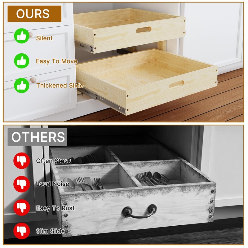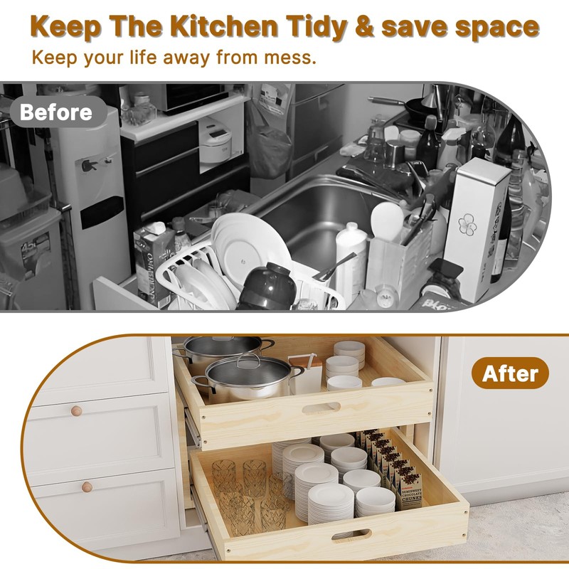 - ✅【Premium Solid Wood Construction】Gornoxblif slide out drawers for kitchen cabinets Crafted from thick knotless solid wood with a sturdy plywood bottom, our pull-out shelves are finished with a double-layer natural clear coat, ensuring long-lasting durability and a sleek look. Ensuring Gornoxblif pull out cabinet organizer durability and a heavy-duty build.