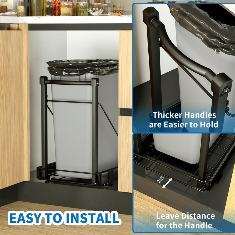 • 【High Cost Performance】: The under cabinet garbage can pull out kit does not include a trash can, you can use it with a 7-13 gallon/35qt trash can at home, or buy a trash can separately, the total price is definitely lower than the trash can rack set, easy save $20.