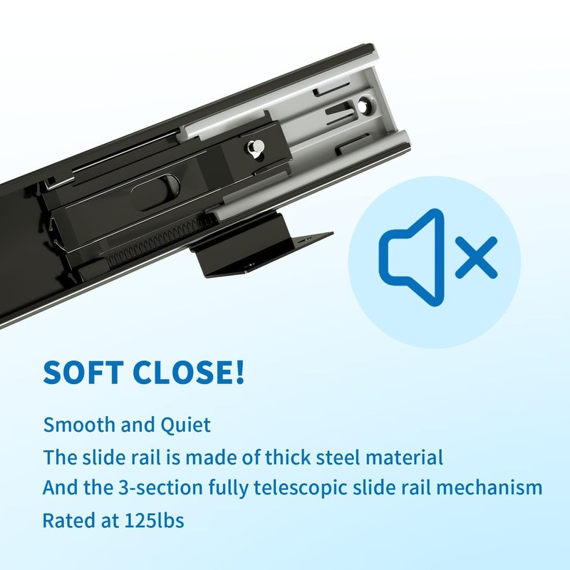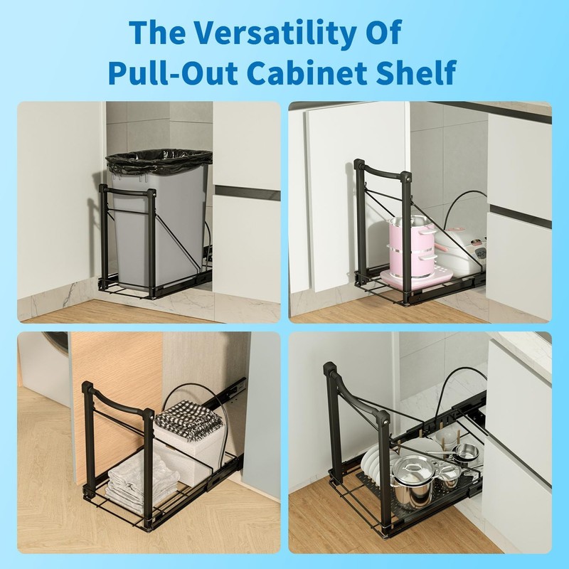 • 【Soft Close】: The pull out trash can under cabinet adopts soft-closing slide rail technology, which runs smoothly and quietly. The slide rail is made of thickened solid steel balls, with a thickened handle design. Corrosion resistant to rust.(Trash can not included)