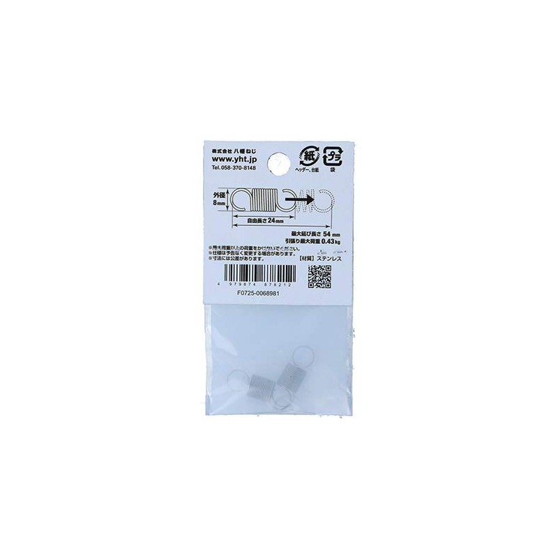 Stainless steel (SUS304) resists rust Material / Surface Treatment: Stainless steel; Directions: Spring used in the direction of tension.