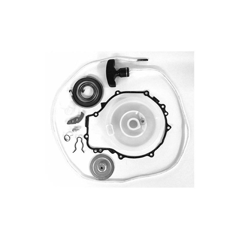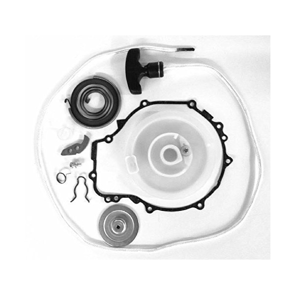 - Kit includes the starter reel, return spring, ratchet, friction spring, friction plate, spring, bushing, recoil gasket and rope assembly