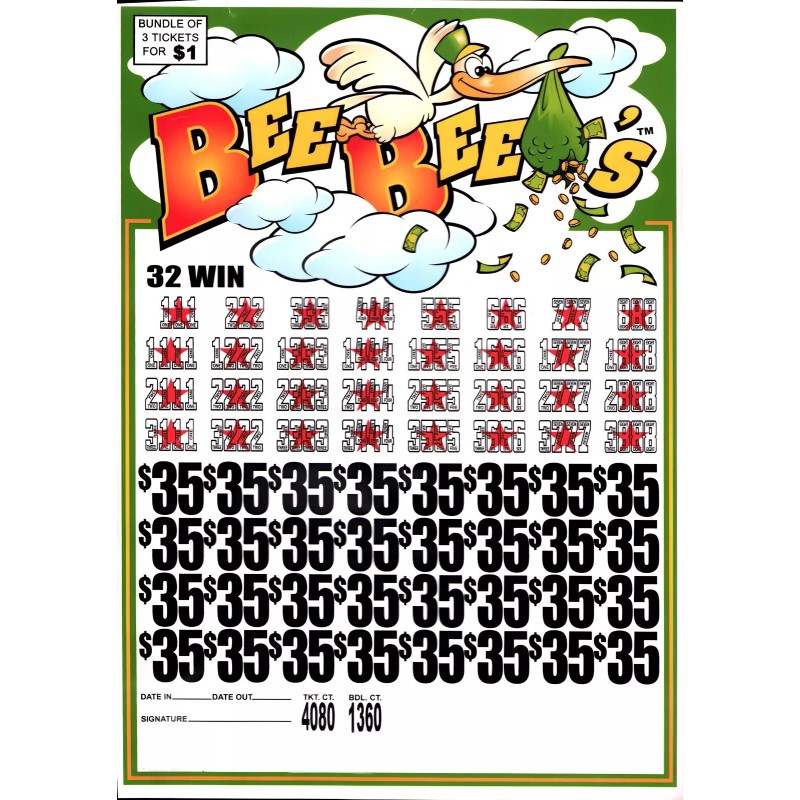 Pull Tab Tickets - Jar Tickets - Game - Bee Bee's $35