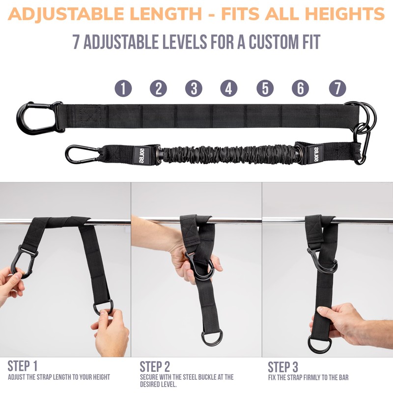 - Adjustable Length: Easily and quickly adjust the height of your pull up assist using the adjustable hook and strap to get the perfect length for your body and ability.