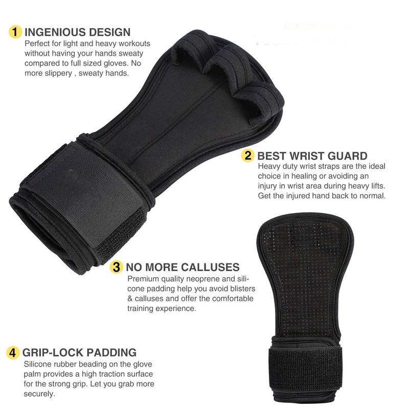 Pull Up Gloves (Pair) with Wrist Support for Cross Training, WODs, Gym Workout with Micro Fiber