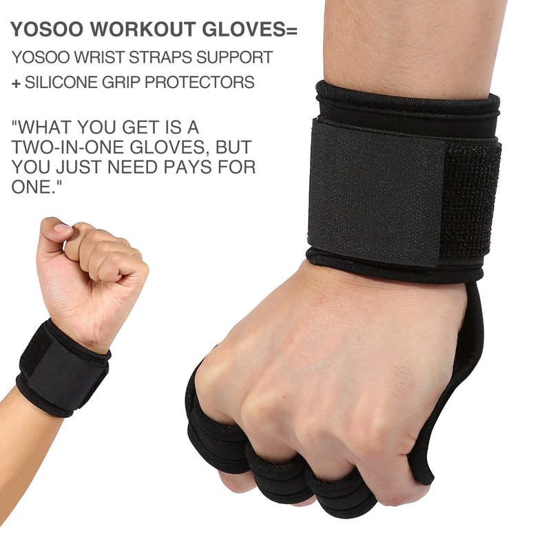 1、TWO-IN-ONE PULL UP GLOVES= HEAVY-DUTY WRIST WRAPS + SOLICONE GRIP PROTECTORS. 2、INTEGRATED WRIST WRAPS SUPPORT - Ergonomically designed and easily adjustable elastic wrist wraps offer awesome wrist support and reduce the risk of injury to your wrist joints by using our cross training gloves. 3、GRIP-LOCK PADDING - Silicone rubber beading on the gym glove palm provides a high traction surface for the strong grip. Let you grab more securely. 4、MUST HAVE GYM ACCESSORY - Ideal for WODs, Weightlifting, Powerlifting, Cross Training, Rope climbing, Chin ups, Pull ups, Bodybuilding, Deadlifts, Dumbbells, Kettlebells. Best pull up fitness gloves for Men & Women. 5、SIZE CHOICES - Measure the circumference of your flat hand at the knuckles (not including your thumb) by measuring tape and decide to choose the gym gloves. If you are between two sizes choose the smaller size. S: 5.9-7inch /15-18cm M: 7-8.3inch / 18-21c