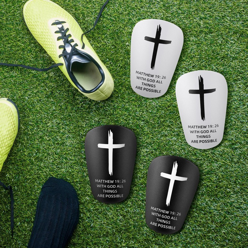 - Wide Application: tiny Shin Pads printed with bible verse religious words, and a cross are suitable for football, futsal, indoor football and other sports, small and compact; This Protective Equipment Shin Guards is a perfect gift for sports enthusiasts