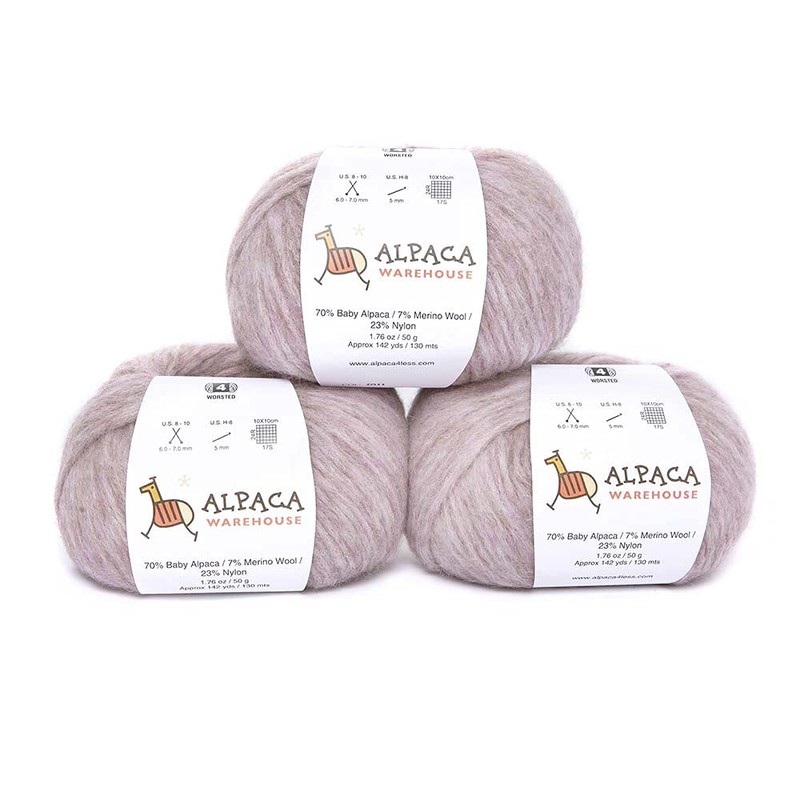 Pullu - Baby Alpaca Merino Wool Yarn Set of 3 Skeins (150 grams) Worsted Weight - Sourced Directly from Peru - Heavenly Soft and Perfect for Knitting and Crocheting (Lilac Rose)