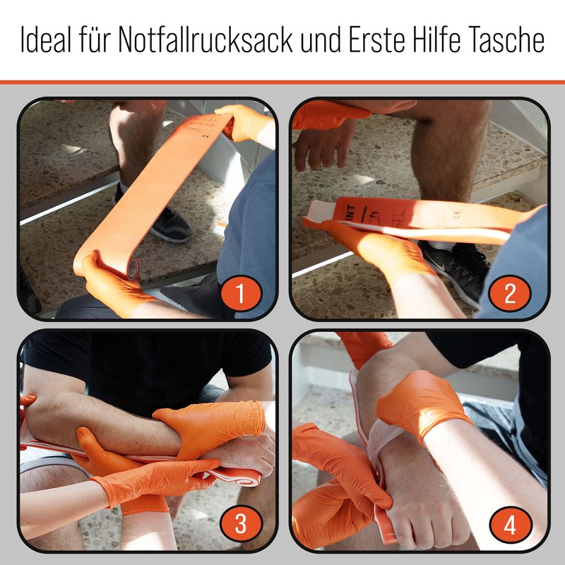 The malleable and reusable universal splint from PULOX is used to immobilise extremities and immobilise fractures. When rolled up, it is extremely space-saving and can be easily carried in any first aid kit. Even on hiking, camping or in holiday luggage, the rail can be stored compactly so that it can be used quickly in an emergency.