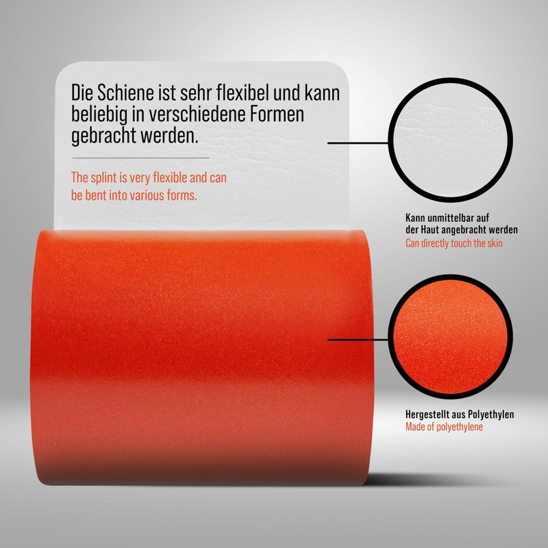 The malleable and reusable universal splint from PULOX is used to immobilise extremities and immobilise fractures. When rolled up, it is extremely space-saving and can be easily carried in any first aid kit. Even on hiking, camping or in holiday luggage, the rail can be stored compactly so that it can be used quickly in an emergency.