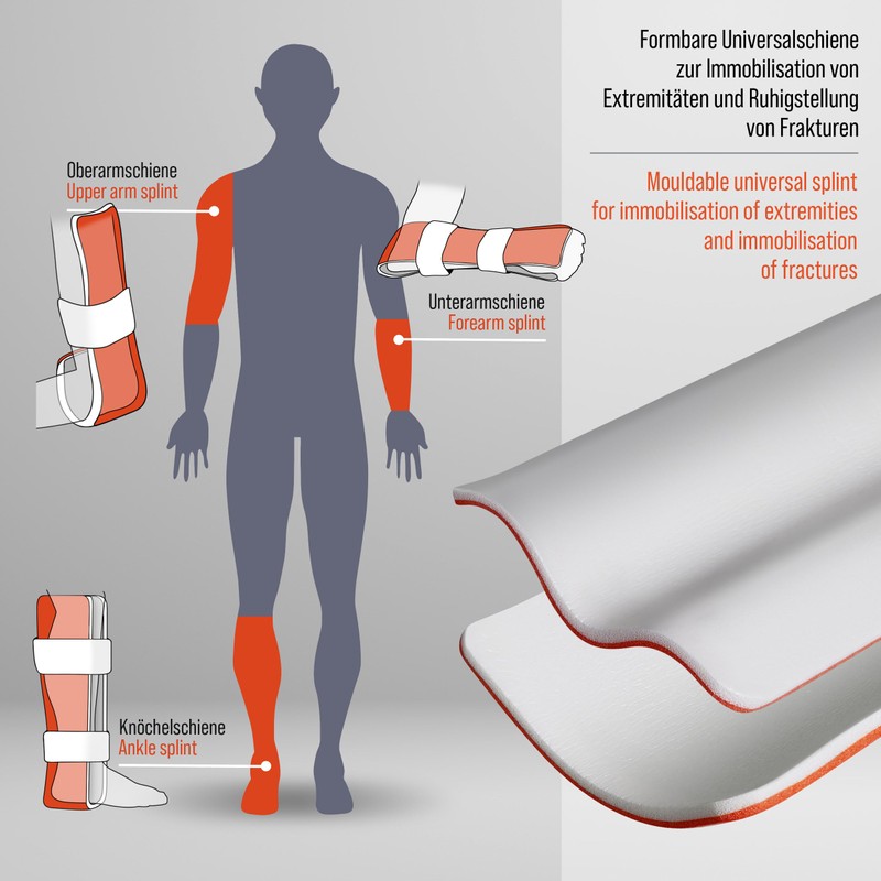 - The malleable, flexible universal splint is used for immobilising extremities and immobilising fractures.
