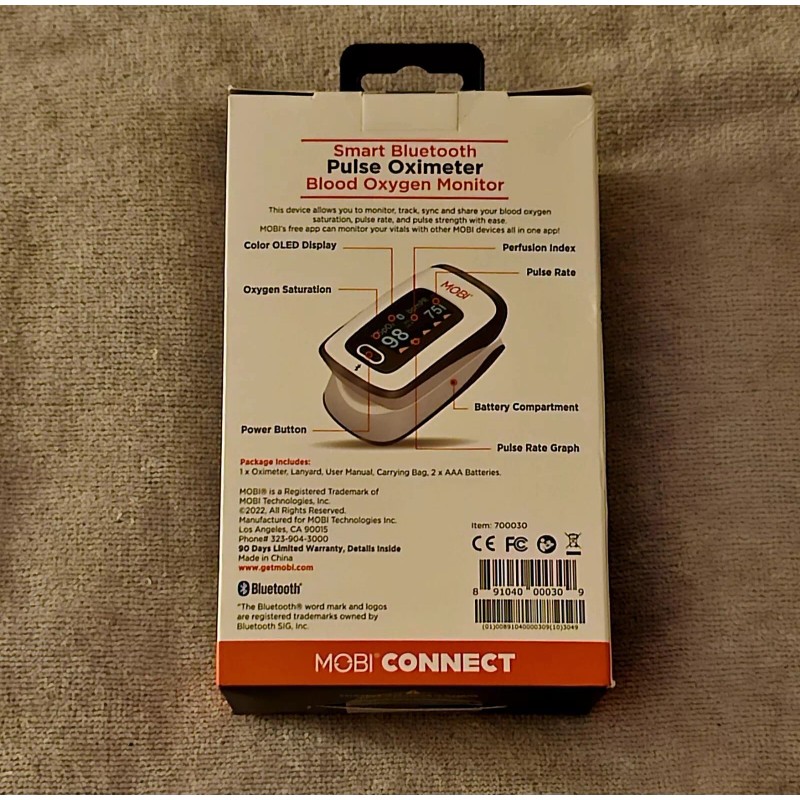 MOBI Connect Smart Bluetooth Pulse Oximeter Blood Oxygen Monitor.
