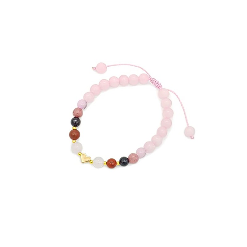- ⭐ [Diseño] Pulsera de cuentas de cuarzo rosa, cuarzo rosa turmalinado, rodocrosita, jaspe rojo y granate, con un diseño clásico, elegante y duradero. Es ideal para cualquier tamaño de muñeca, ya que es ajustable y cuenta nudo corredizo. Las cuentas tienen un tamaño de 6mm y las terminaciones son doradas.