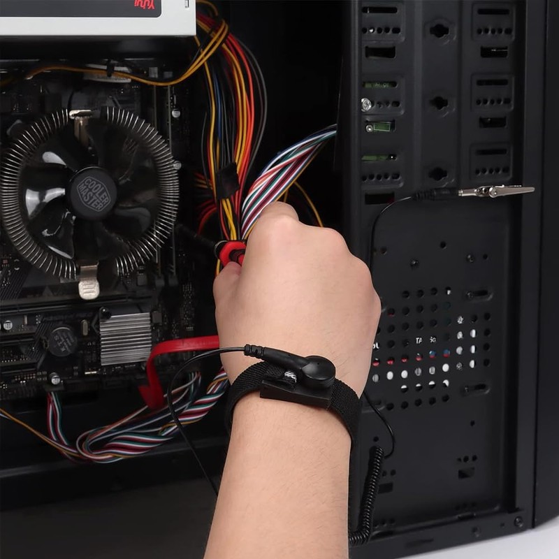 • ⚡【Herramienta segura ESD】👍🏼La pulsera antiestática tiene una resistencia incorporada de 1 MΩ, que protege sus componentes electrónicos de daños accidentales por descarga electrostática (ESD) durante las reparaciones. La pulsera antiestática elimina la electricidad estática del cuerpo humano en 0,1 segundos para igualar la carga entre la mano y los dispositivos electrónicos.