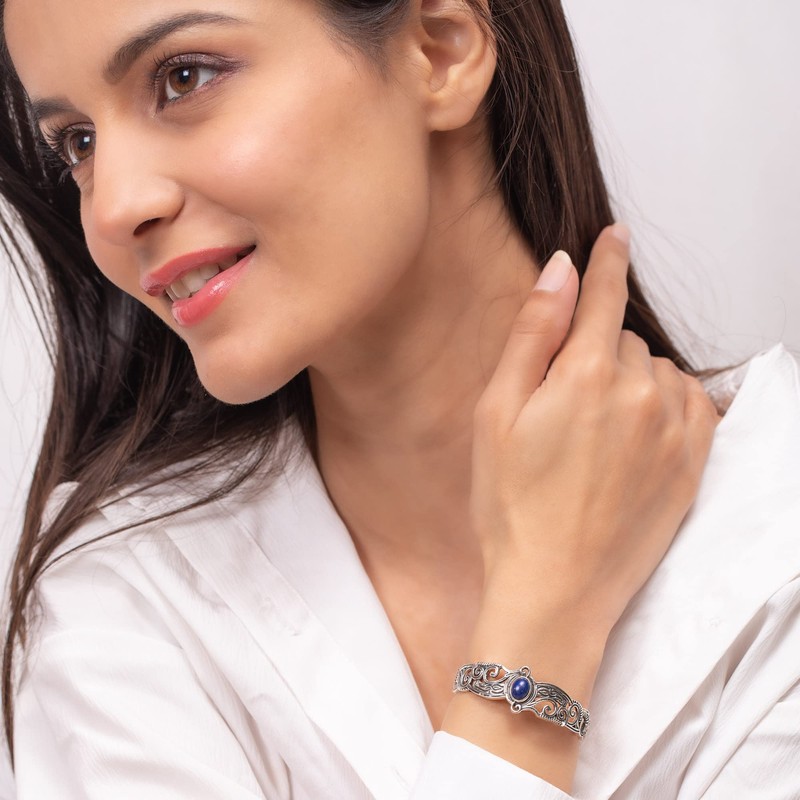 Pulsera de plata de ley 925 con lapislázuli de plata de ley 925 | Pulsera de pulsera (azul), Gema, Lapislázuli