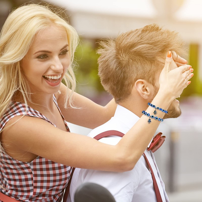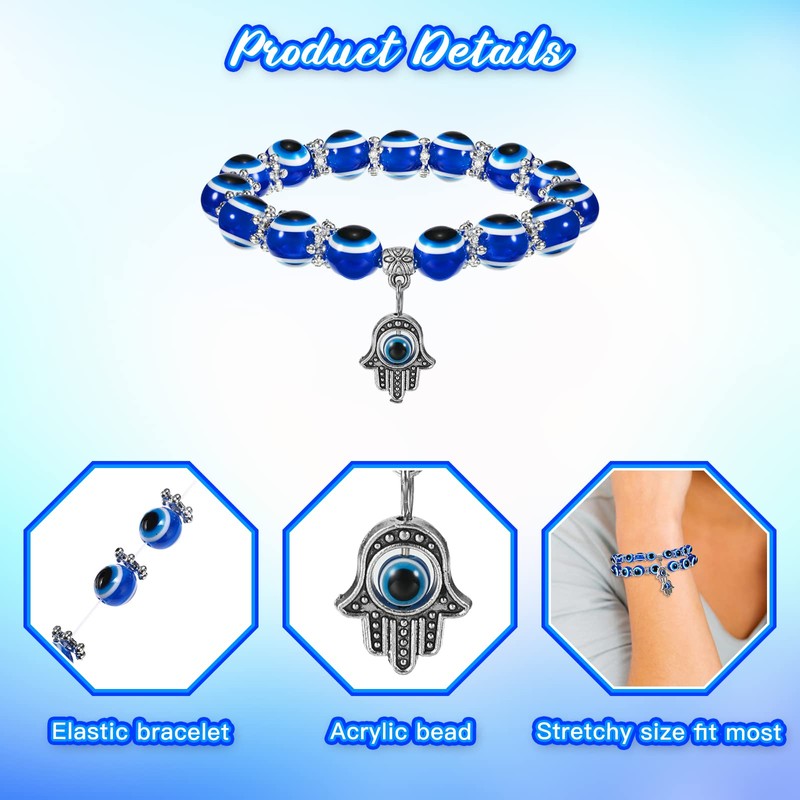 - Significado protector: las pulseras elásticas con cuentas tienen ojos azules malvados y un colgante de la mano de Fátima, que simboliza la buena suerte y la protección, usarlas puede traerte bendiciones; Pueden ser bonitas pulseras de amuleto para regalar a tus amigos y familiares, expresando tus cálidos deseos
