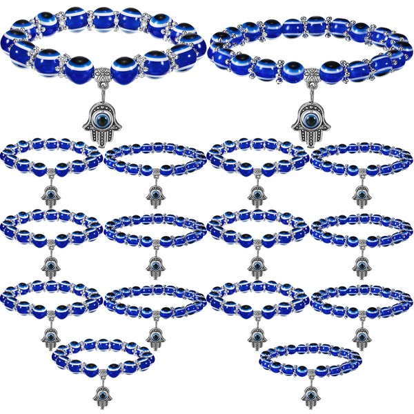 Pulsera Mal de Ojo Azul por Protección 8 mm 10 mm Hamsa Mano de Fátima Pulseras de Cuentas Pulseras de Amuleto ( 16 Piezas)
