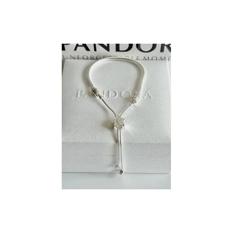 Pulsera Plata S925 Brazalete Ajustable Estrella Compatible Plata