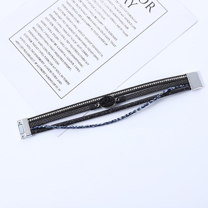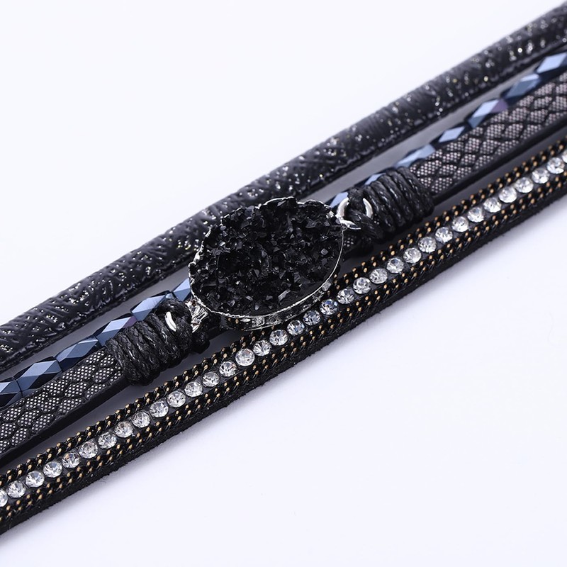 - Diseño único: la pulsera de cuero negro se envuelve alrededor de su muñeca y brilla con hebras compuestas de piedra de resina y una sola hebra con cuentas de cristal.