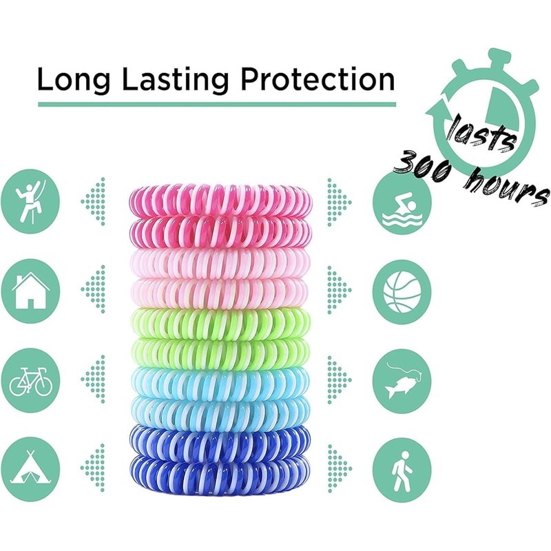 - 【MATERIAL EVA IMPERMEABLE】nuestra pulsera antimosquitos es un repelente de exteriores que funciona con alta humedad y continúa funcionando incluso cuando se moja. Son perfectos para paseos matutinos, barbacoas o reuniones en el jardín, actividades al aire libre de fin de semana como pescar, jugar golf o acampar.