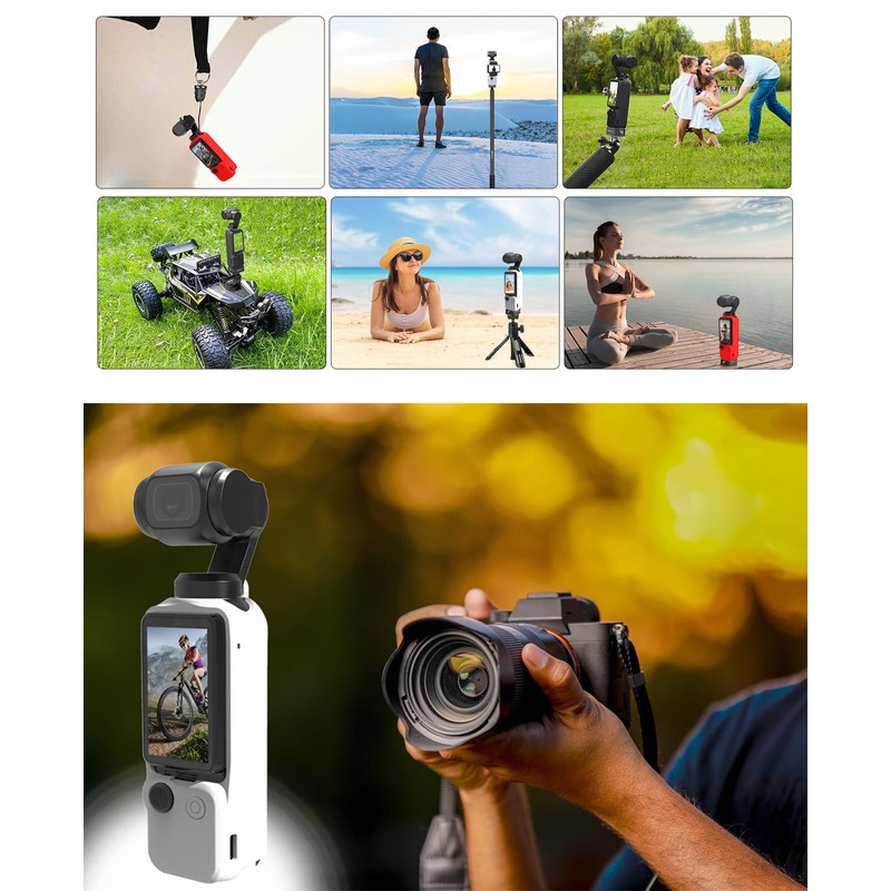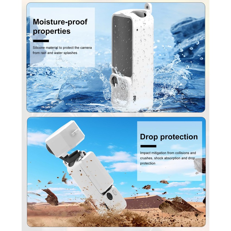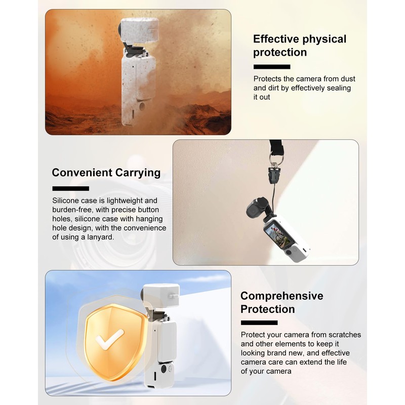 - 【Comprehensive Protection】The silicone combination protective case includes a body protective case, lens protective cover, and touch screen protective cover, which can effectively protect the camera and reduce dust, stains and scratches on the device, providing all-round protection for DJI OSMO Pocket 3 Protect.
