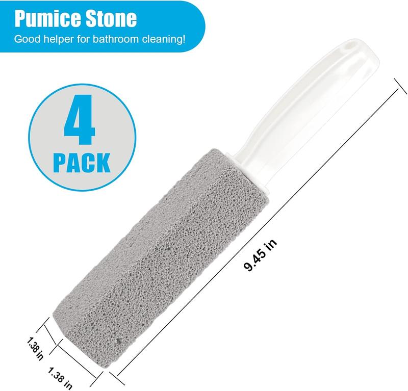 PUMICE STONE WITH HANDLE : Pumice stone for toilet provides grip to maneuver during cleaning. Keep your hands clean while using the pumice stick. Toilet pumice with plastic handle and no gloves needed!