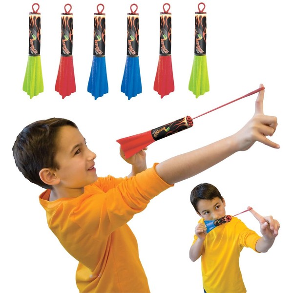 - Pack includes 3 Sets of Finger Flingers (6 total rockets) in assorted colors.