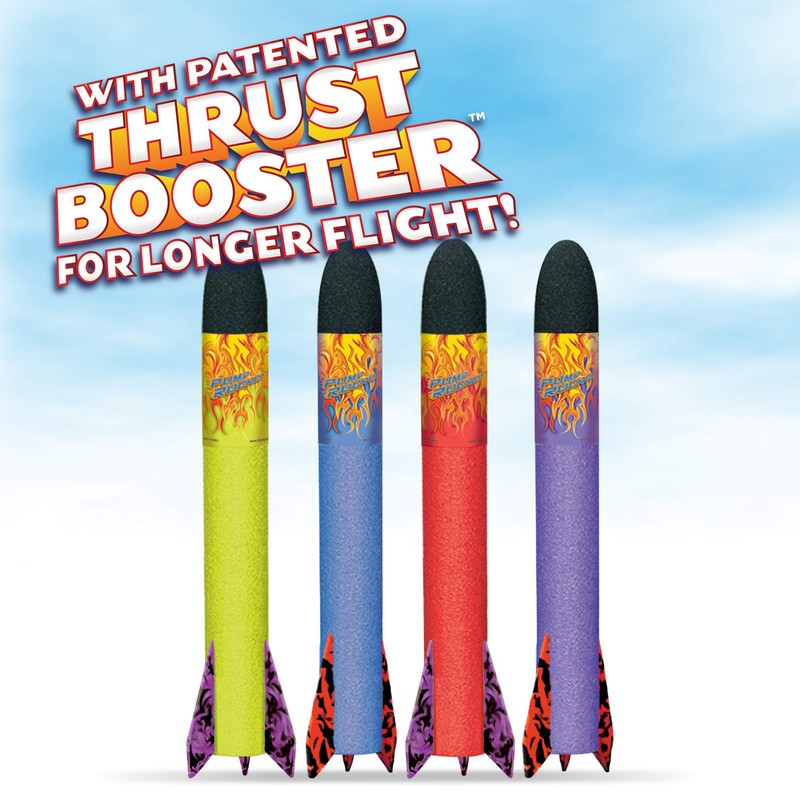 - BIGGER IS BETTER: The JUMBO PUMP ROCKET SR. is our largest pump rocket in our flying rockets range. Patented thrust booster launches the rockets up to 150 feet!