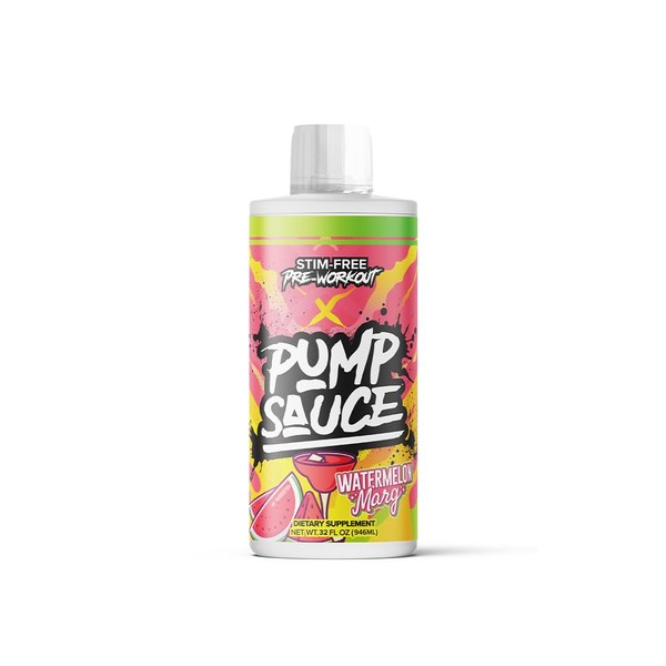 Pump Sauce Pre-Workout - 32 oz, Watermelon Marg, No Caffeine, Full Spectrum Liquid, Gluten Free, Vegan, Zero Sugar