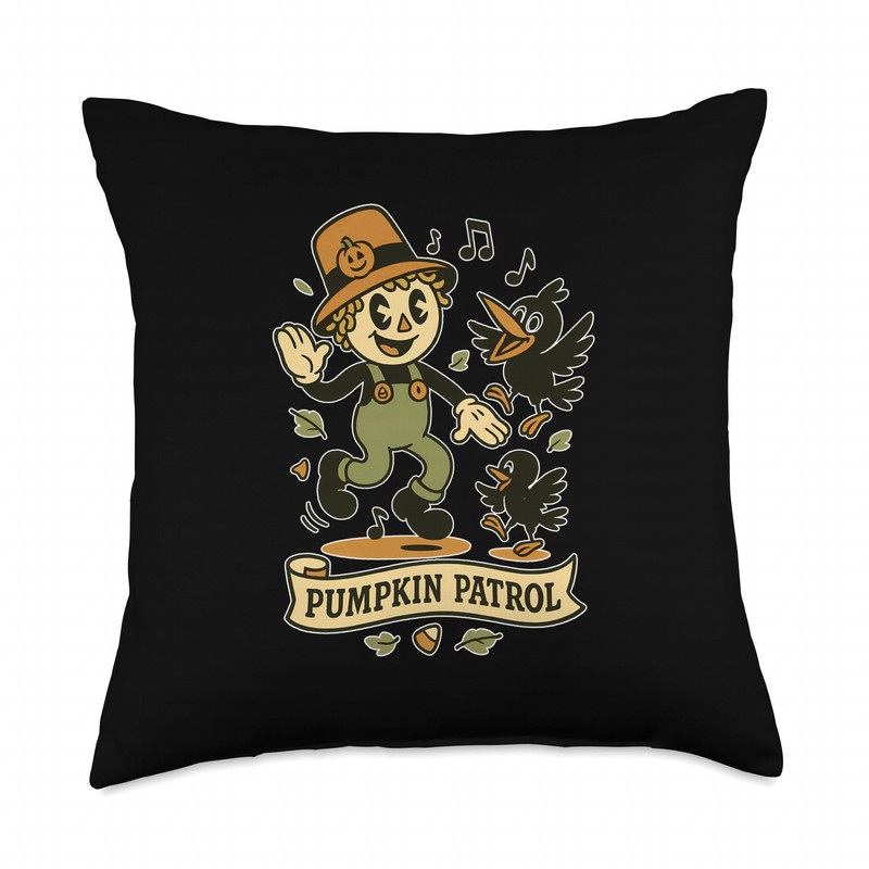 - Playful scarecrow leads singing crows on leafy “Pumpkin Patrol”, perfect for autumn lovers who enjoy vintage cartoon vibes. Nice grafic for Fans of creepy nights, pumpkins and playful frights with the title: Pumpkin Patrol Scarecrow Dance.