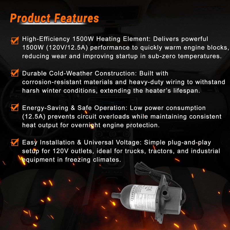 - Easy Installation & Universal Voltage: Simple plug-and-play setup for 120V outlets, ideal for trucks, tractors, and industrial equipment in freezing climates.