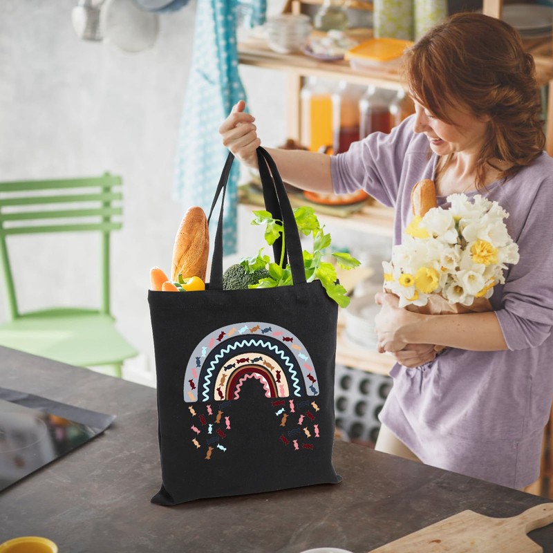- Ideal for DIY: These cotton tote bags are designed with all black color, suitable for sublimation printing, You can also paint or knit cute patterns and words to create an unique bag. Tips: A layer of paper should be added in the middle in order to better do graffiti creation.