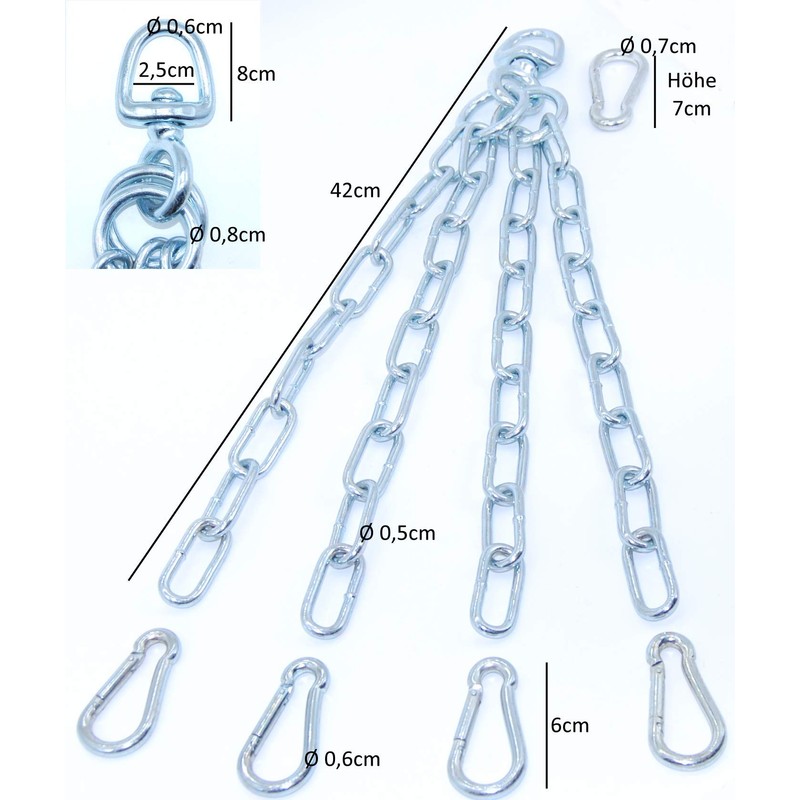Punch Bag Chain/Carat: Ideal for any room at home – with Swivel, 4 Medium and Single Large Carabiner Clip for Easy Fasten to the ceiling. High Quality.