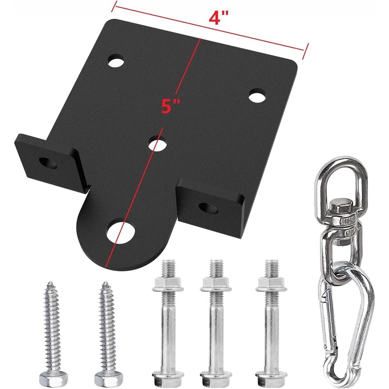 - Include one heavy bag hanger, one buckle, 2 lag bolt 9/32”x 2", 2 hex bolts 5/16" x 2 3/8", 6 washers, Just drill the holes and screw our bolts you will finish the installation in 5 minutes.