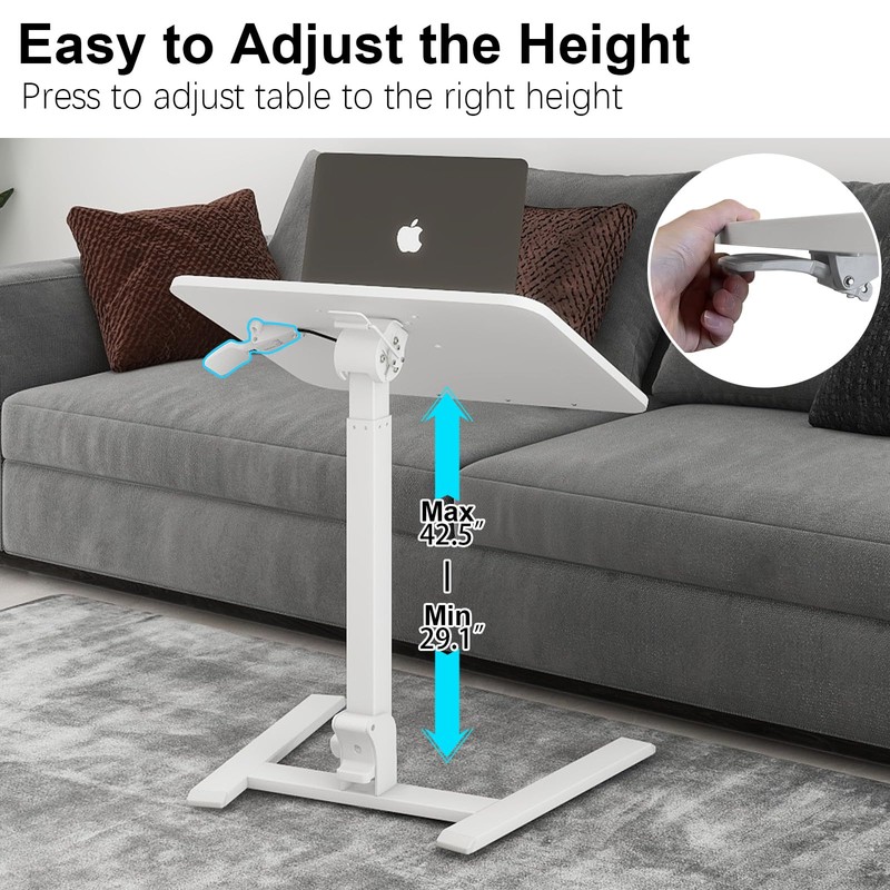 - [Adjustable Height] The mobile laptop desk's adjustable height feature allows you to find the perfect position for your needs.Smoothly adjust from 29.1” to 42.5” to improve posture, reduce back pain, and work more comfortably.