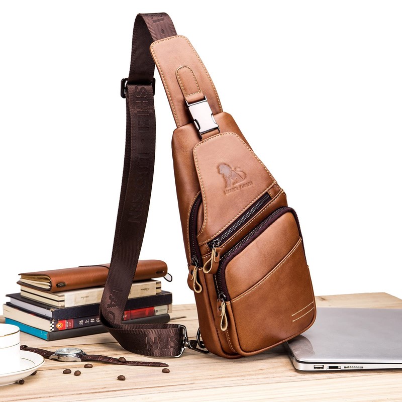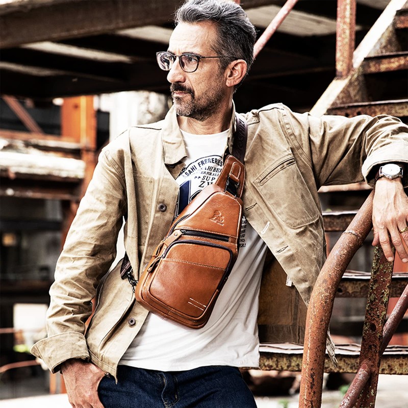- Material: This shoulder sling chest bag is made of high-quality leather, which provides durability and a classic look.