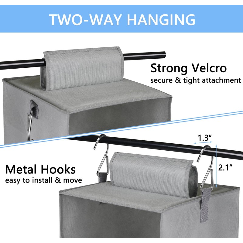 punemi 3-Shelf Hanging Closet Organizer, 2 Pack Closet Hanging Organizer with Drawers, Foldable Hanging Closet Shelves for Rv, Camper, Locker, 22.8" D x 11" W x 11" H, Grey