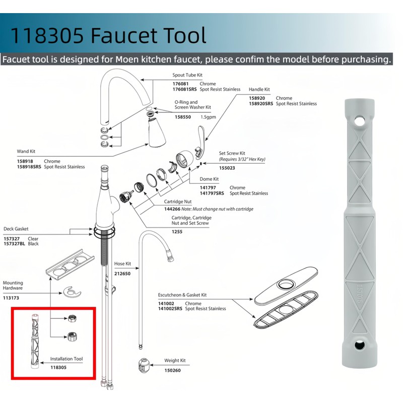 Imagine trying to tighten or loosen a stubborn faucet nut under your sink, only to struggle with limited space and awkward angles. With our 118305 Faucet Installation Tool, you’ll love how it simpl evenifies the toughest faucet repairs or installations. Designed specifically for Moen 118305 series replacement parts, this tool is your go-to solution for tackling nuts in hard-to-reach places, whether they’re under the sink or hidden behind other fixtures.