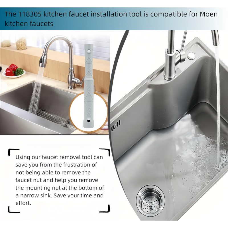 • Compatible with Moen 118305: Designed specifically for Moen 118305 series replacement parts, this tool is ideal for tightening or loosening nuts under the sink or in hard-to-reach hidden places, making faucet repairs and installations easier than ever