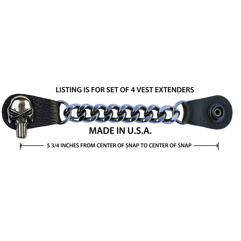PUNISHER SKULL ON GUNMETAL/BLACK CHROME CHAIN VEST EXTENDER (set of 4)