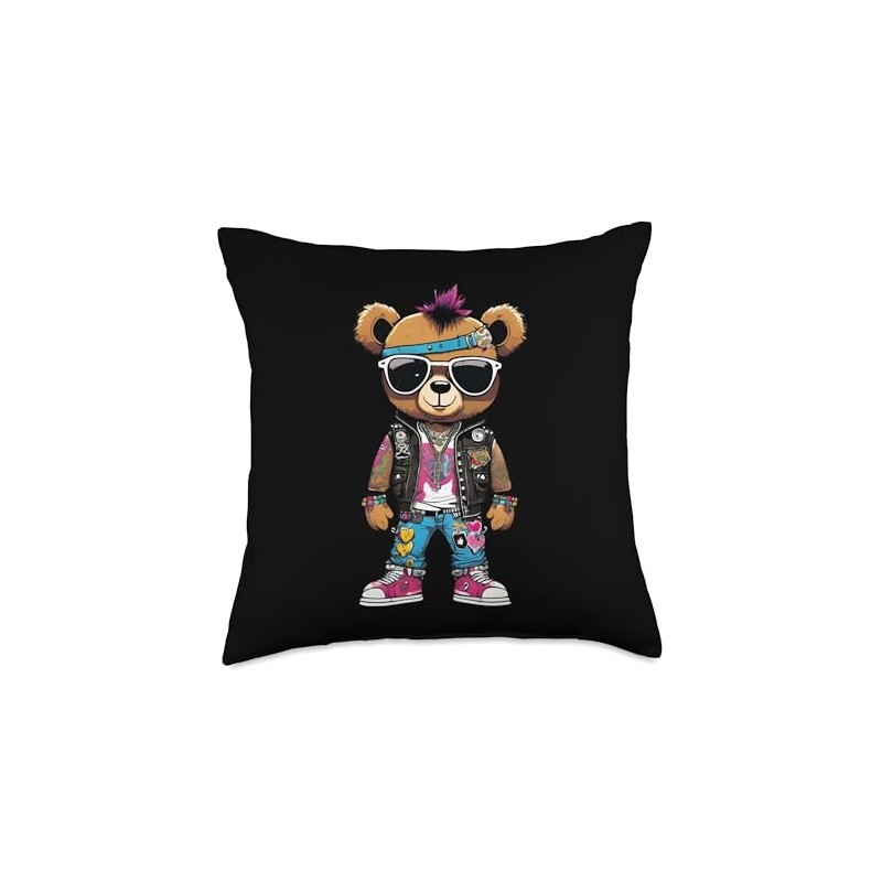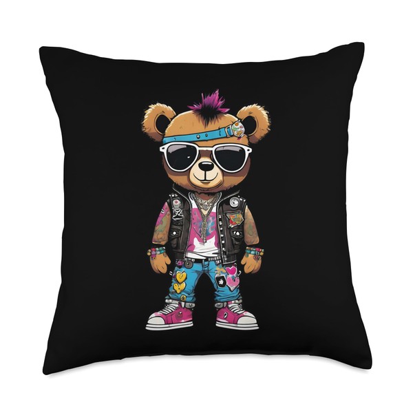 Punk Rocker Rapper Popster Punker Teddy Bear Rap Hip Hop Throw Pillow