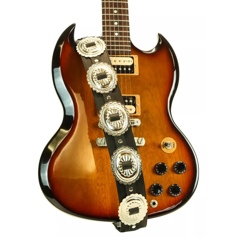Punkaddict Extra Large Oval Conchos High Quality Leather Black Guitar Strap
