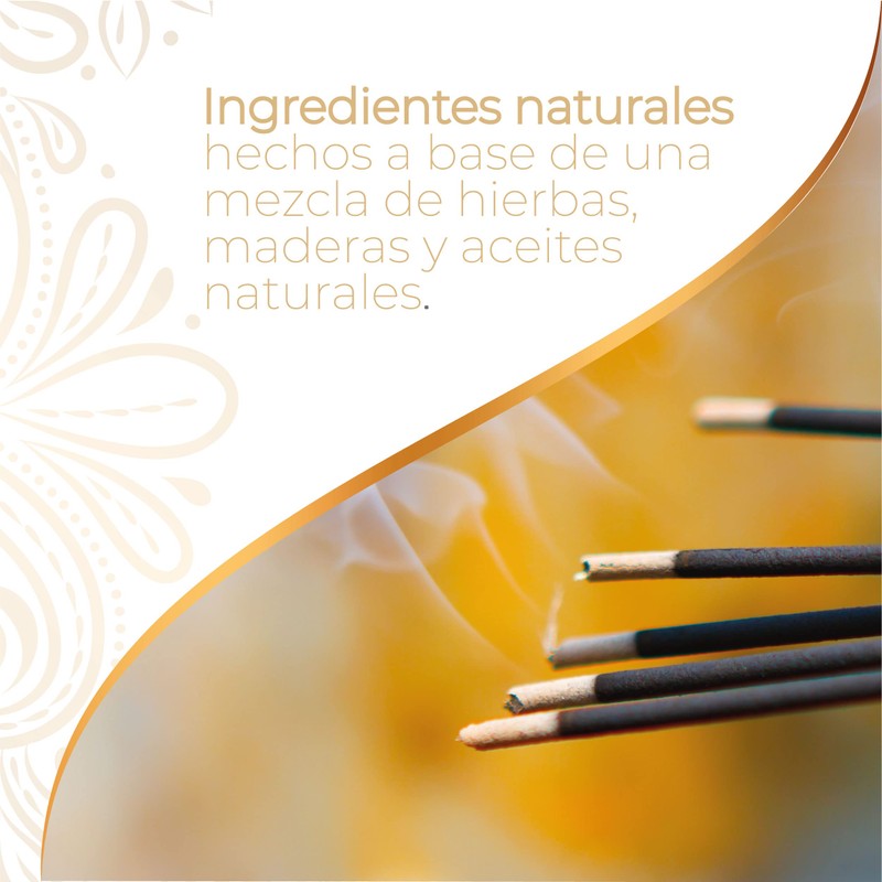 - LARGA DURACIÓN. Tiempo de combustión de 35 a 40 min. Contenido: 6 cajas con 20 varitas de incienso cada una.