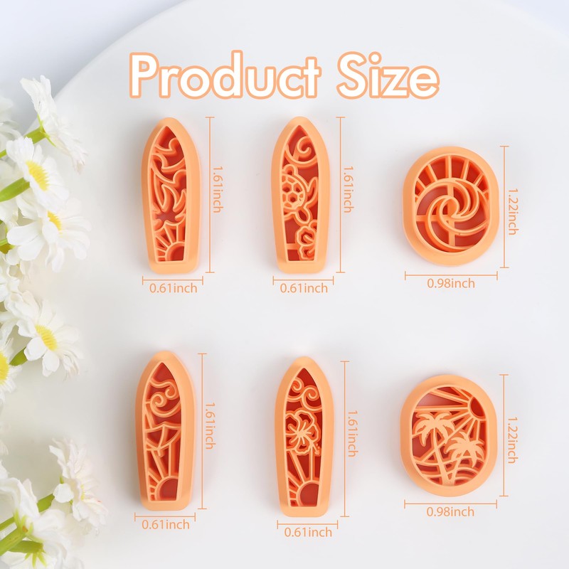 - Ocean Inspired Clay Cutters: You will receive 6 polymer clay cutters for this ocean clay cutters set. There are 4 surfboard shape clay cutters, got sun ray and ocean wave pattern on the clay cutter