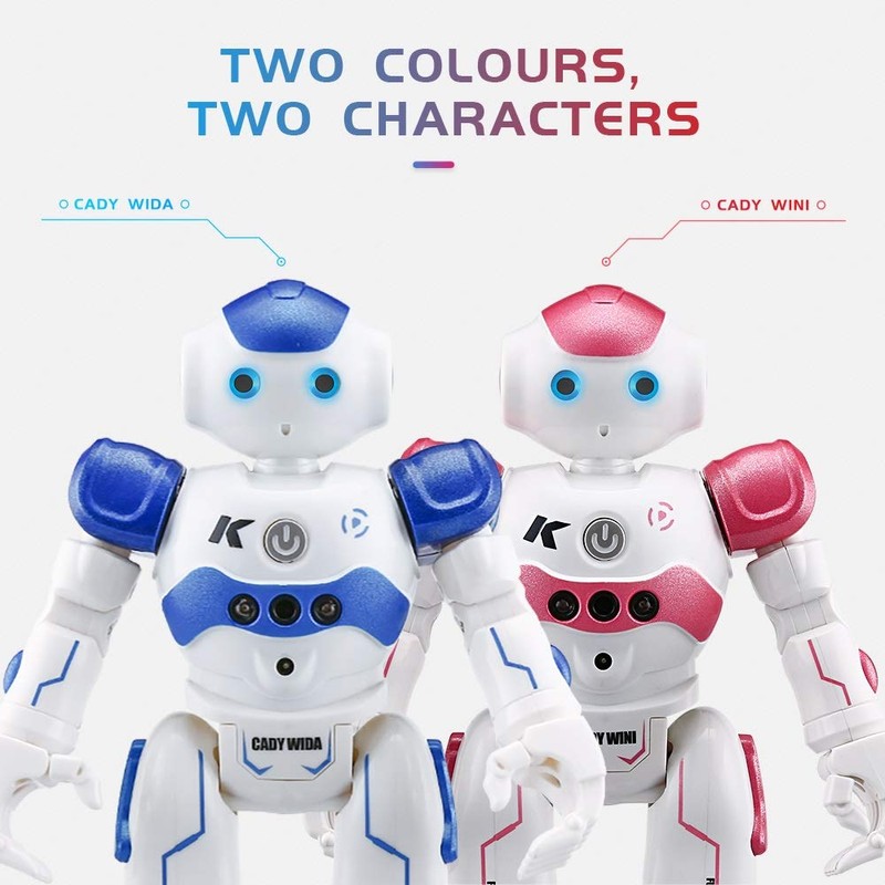 - [Interactive Fun] - The robot can sing and dance to entertain you. The remote control robot is equipped with illuminated eyes, engaging sound and music to make playing more interactive. The robot can perform singing, walking, sliding, speaking, accompanied by dance moves, and simulation of anthropomorphic design brings more fun to children